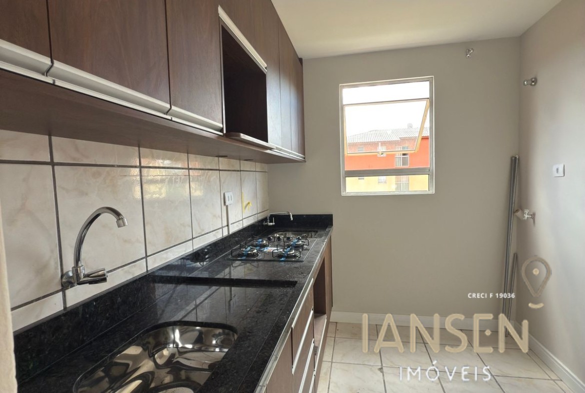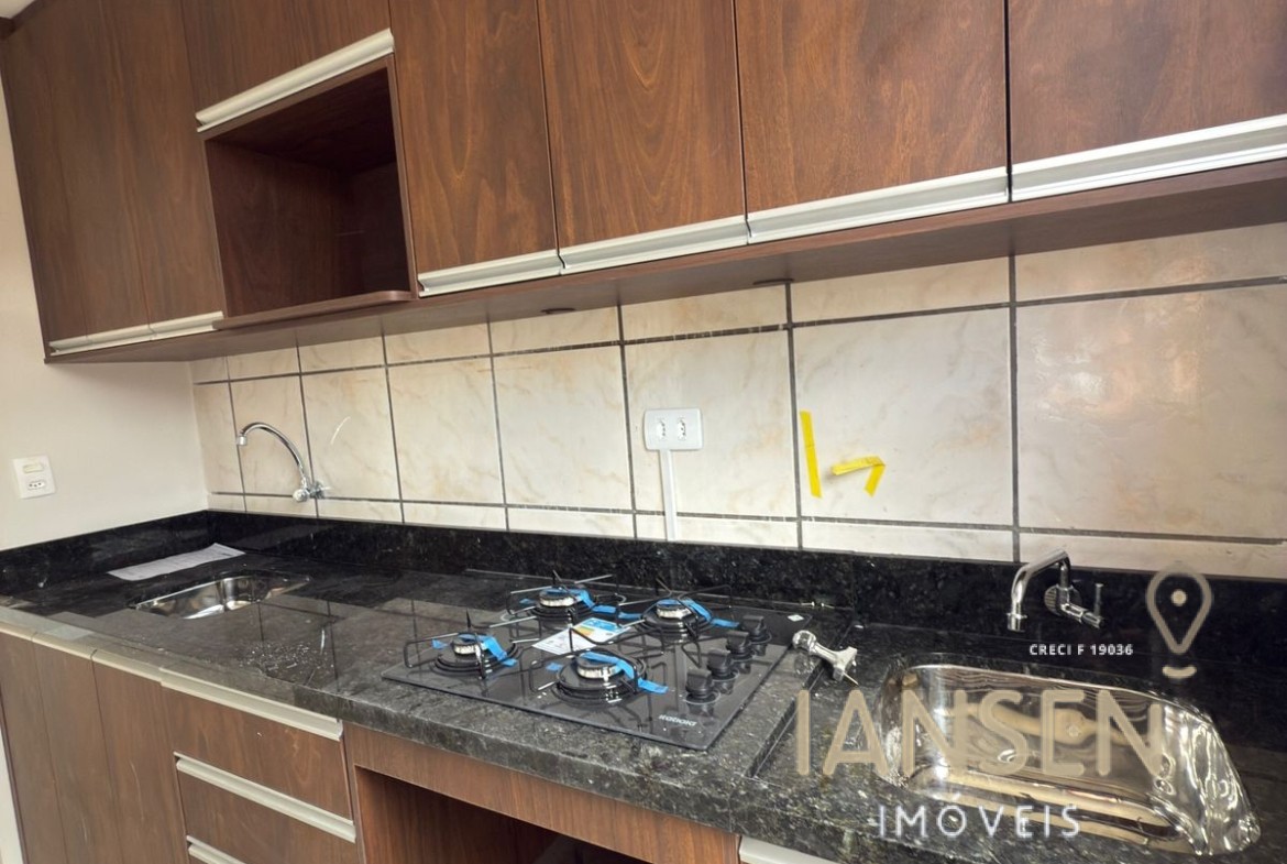 O apto possui 2 quartos, sala para dois ambientes, cozinha com armários e cooktop novos. Armário no lavatório e banheiro.